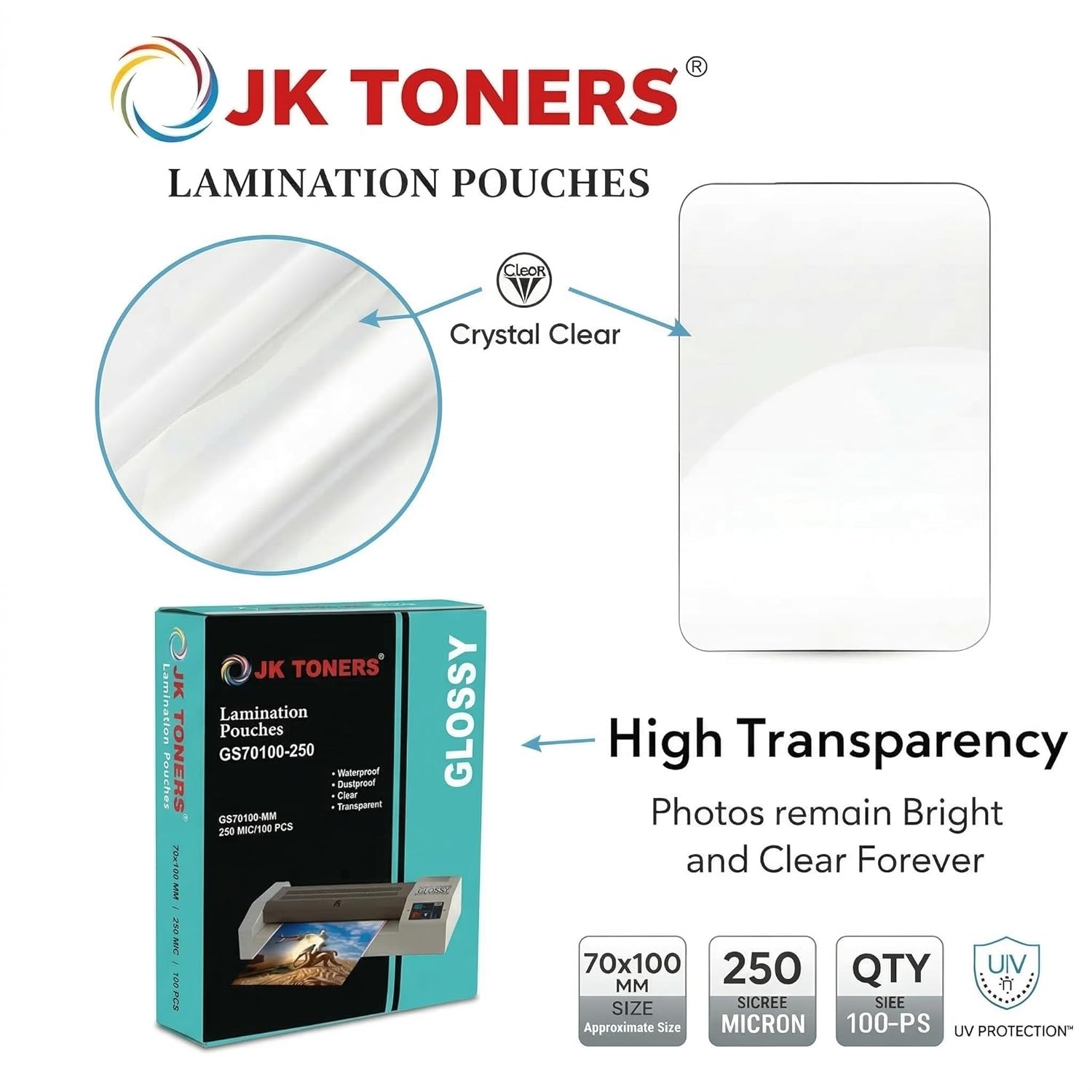 Jk Toners 70mm * 100mm Thermal Lamination Pouch, 250 Micron Lamination sheet ( 2 packs)