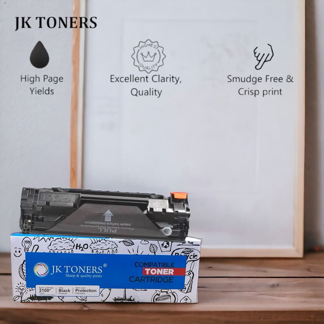 Now you can save on the LaserJet printer cartridge expense by getting the JK TONERS Black Toner Cartridge which is compatible with your Laserjet printer. You can now combine the efficiency of you printer with the quality of the JK TONERS Printer cartridge and get great results. It gives you crisp and clear prints and copies. It can print up to 3000 pages in one go which makes it easy on your budget. The printer is easy to install and is apt for commercial purposes.